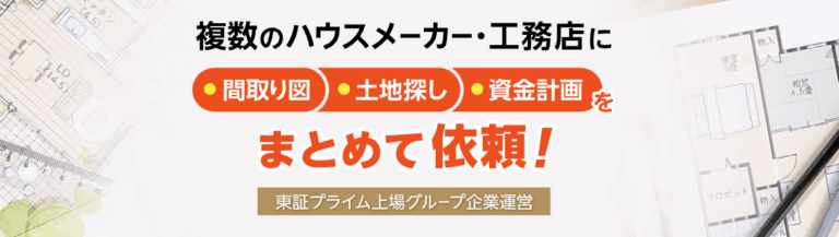 あなたの希望条件(間取り・予算・土地など)を入力するだけで、条件にぴったりのハウスメーカー・工務店がリストアップされ、「あなた専用の間取り+資金計画書」を無料で作成してくれます。