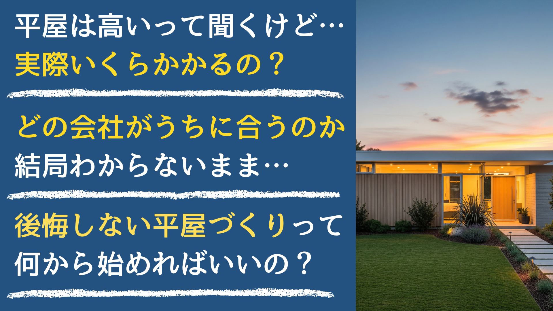 ネットには「平屋ランキング」や「おすすめメーカー」があふれていますが、実際に自分の条件でいくらかかるのかまでは分かりません。